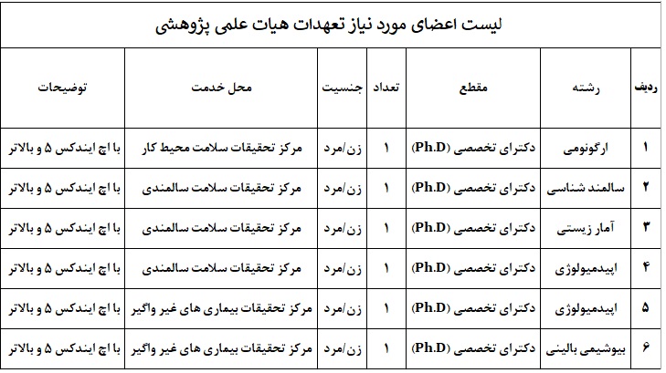 به اطلاع می رساند دانشگاه علوم پزشکی نیشابور، در راستای تامین نیروی انسانی متخصص خود در حوزه  پژوهشی از میان متقاضیان واجد شرایط برای رشته های مورد نیاز در قالب هیات علمی پژوهشی متعهد خدمت دعوت به همکاری می نماید.