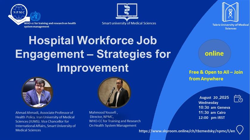 وبینار آموزشی بین المللی Hospital Workforce Job Engagement – Strategies for Improvement ۲۹ مرداد ۱۴۰۴ | ۱۰:۰۱ کد : ۵۳۹۲۵ اطلاعیه ارسال به دیگران نام شما ایمیل شما ایمیل دریافتکننده ارسال انصراف تعداد بازدید:۱۶۹۱ وبینار آموزشی بین المللی Hospital Workforce Job Engagement – Strategies for Improvement